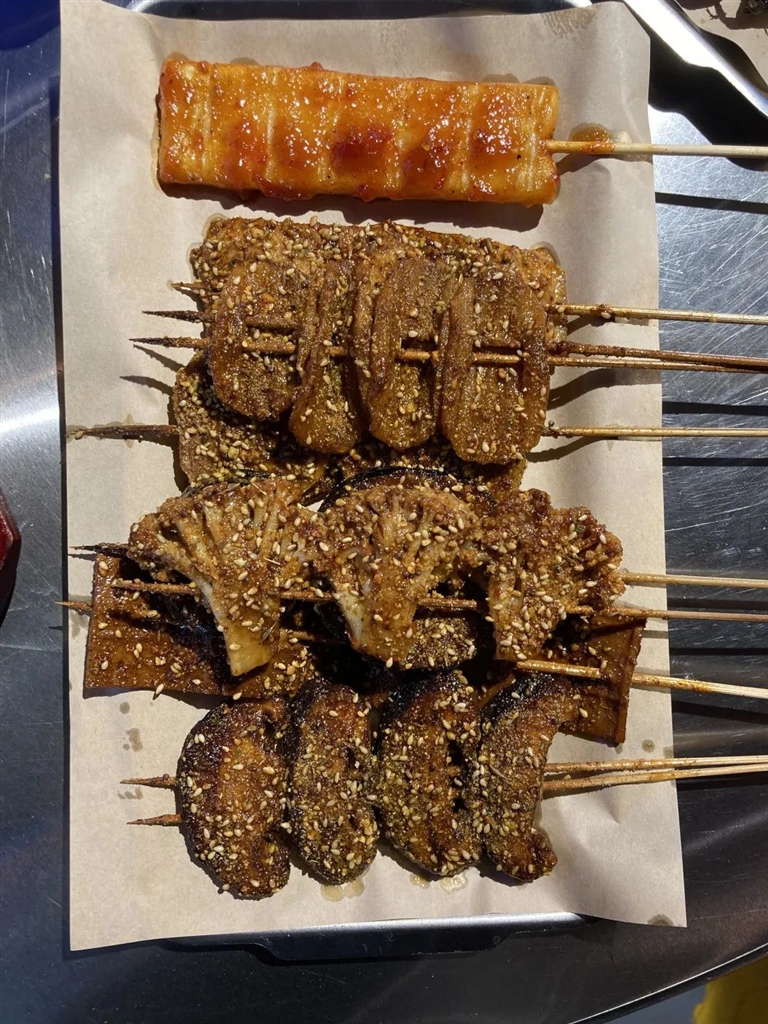 店内荤素烤菜有20多种,可以满足所有人的需求。“欢欢布车”之所以受欢迎,主打的就是性价比。如年糕,老板不会买市场上的速冻产品,每周都会从延边订购手工年糕,为了保证年糕的新鲜度,一次不能进货太多,这样运费有时候比货物本身都贵。