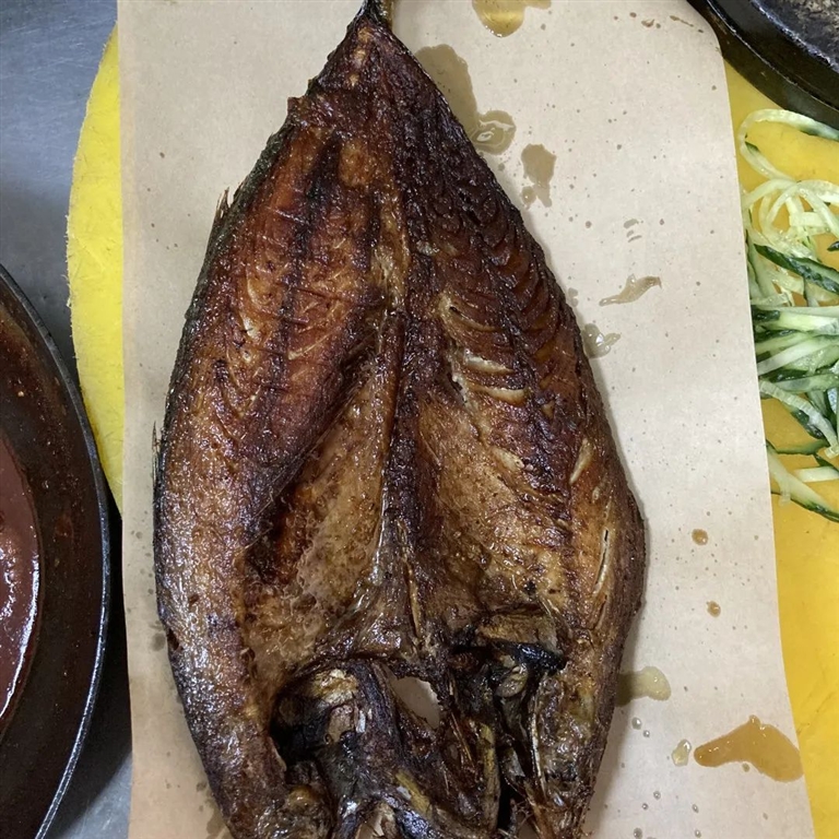 烤肉有牛肉和猪肉,分为牛肋条老式拌肉和肥牛,牛肉是精选黄牛肉;猪肉是当地农村粮食猪,分为“五花”和“梅花”两种。为了保留肉本身的香味儿,烤肉时没有使用过多的技巧,只用韩式特色调料增加原有风味。