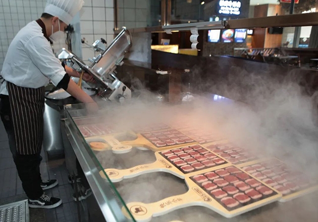 看着色泽乳白、鲜味浓郁的汤底,巴彦淖尔日报社两位主播忍不住拿起了筷子,夹上口感丰富的厚切羊羔肉上脑,放上久煮不柴的厚切羔羊前腿条,还有脆脆的手打蟹子墨鱼滑,一边自由控制火候,一边待时机成熟将细嫩多汁的食材收入腹中。羊肉吃起来口感劲道、鲜而不腥,肉片厚度经过厨师的精确把控,食客每咬一口都会有汁水从纹理中溢出来,带领肉食爱好者抵达新大陆。
