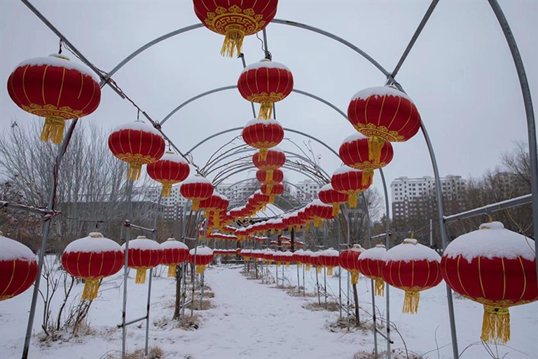 雪打灯 记者齐鸿雁摄于临河街头