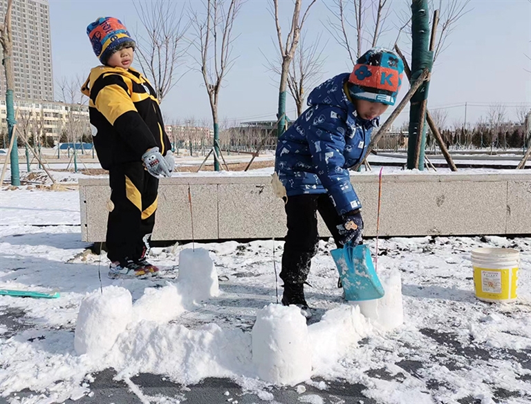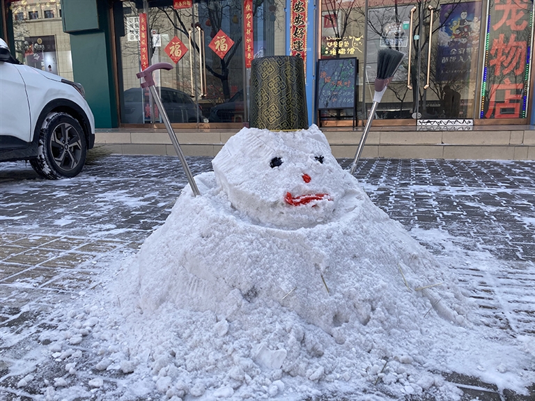 堆个大雪人 记者 杨晓军 摄