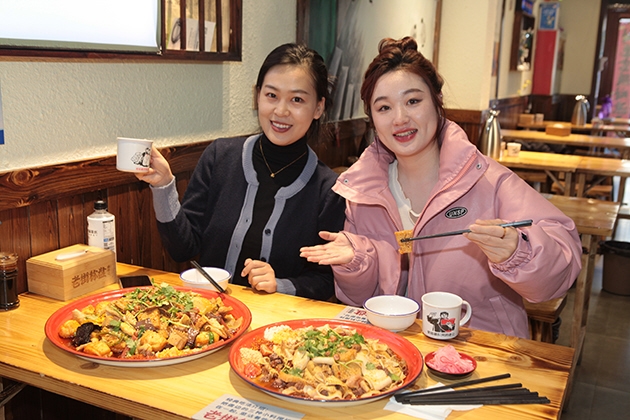 该店负责人冯予良介绍,干拌麻辣烫是本店特色,吃的时候要从盘底的汤水里夹起,蘸点辣椒、裹上蒜泥,一口下去,椒香、蒜香、脂香在口中“爆”开,鲜香麻辣太满足!如果需要配米饭,店里的米饭每位3元并无限续碗。放眼全国,据说就着干拌麻辣烫一顿吃三碗米饭的比比皆是。