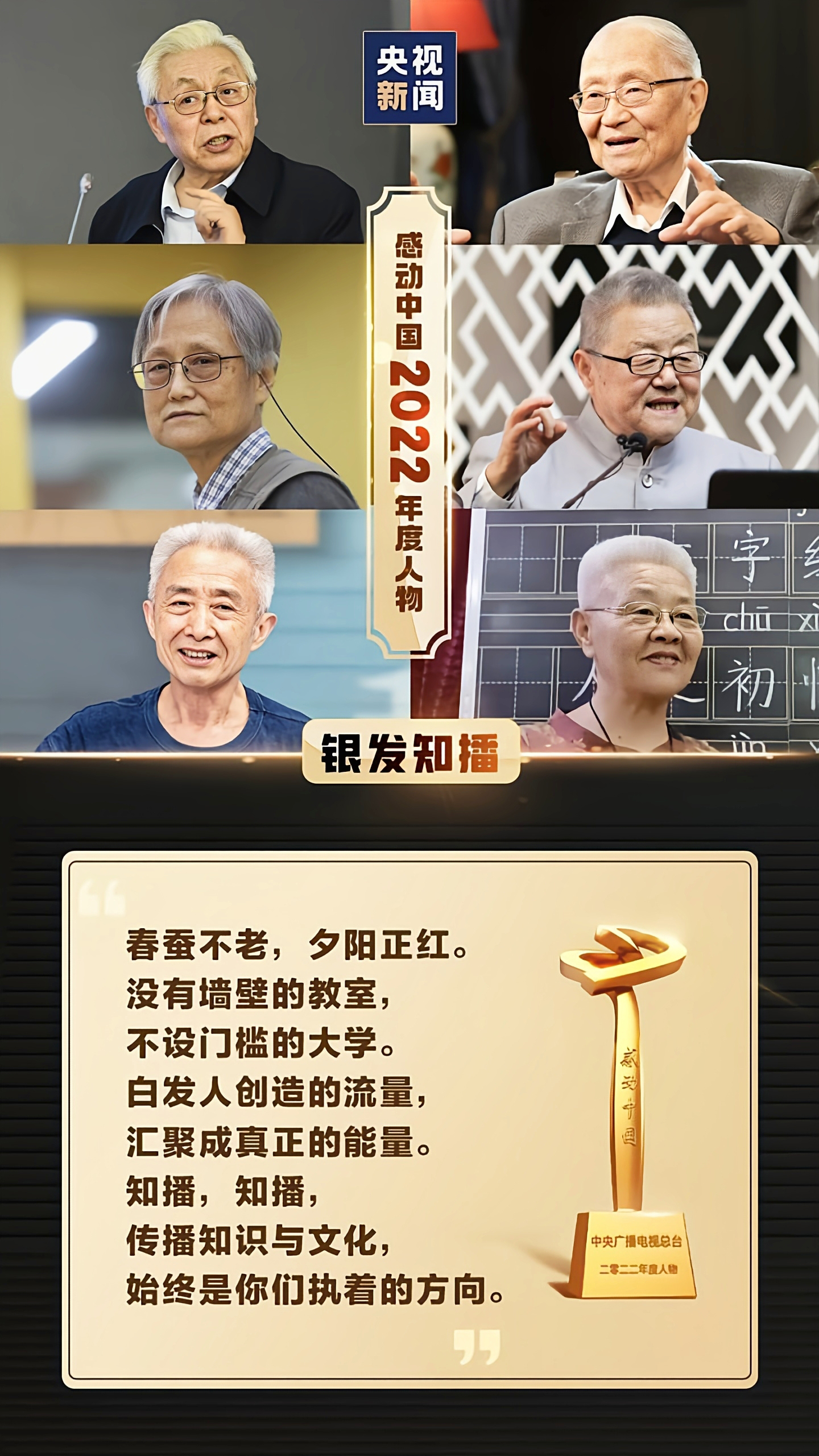 这些爷爷奶奶真酷!3月4日,“感动中国2022年度人物”揭晓,集体奖花落13位“银发知播”。他们平均年龄77岁,有中国科学院院士、中国科技馆研究院副馆长,还有大学教授和中小学老教师;其中6位开设了抖音账号,有4位曾在抖音分享知识。借助短视频与直播,他们打破了传授知识的时空边界,让每个爱学习的人都有平等接触优质资源的机会,在全国网友之间掀起了一场知播狂欢。