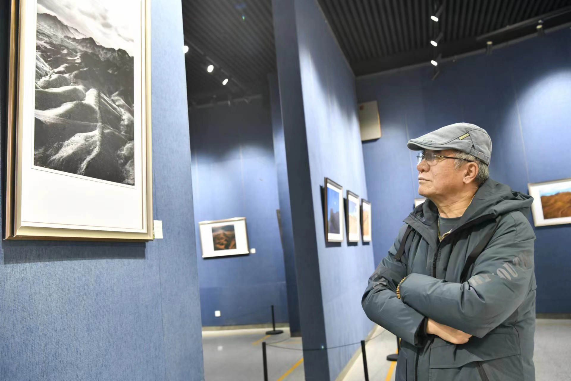 原市摄影家协会主席王联柱观展 记者 高晓龙 摄