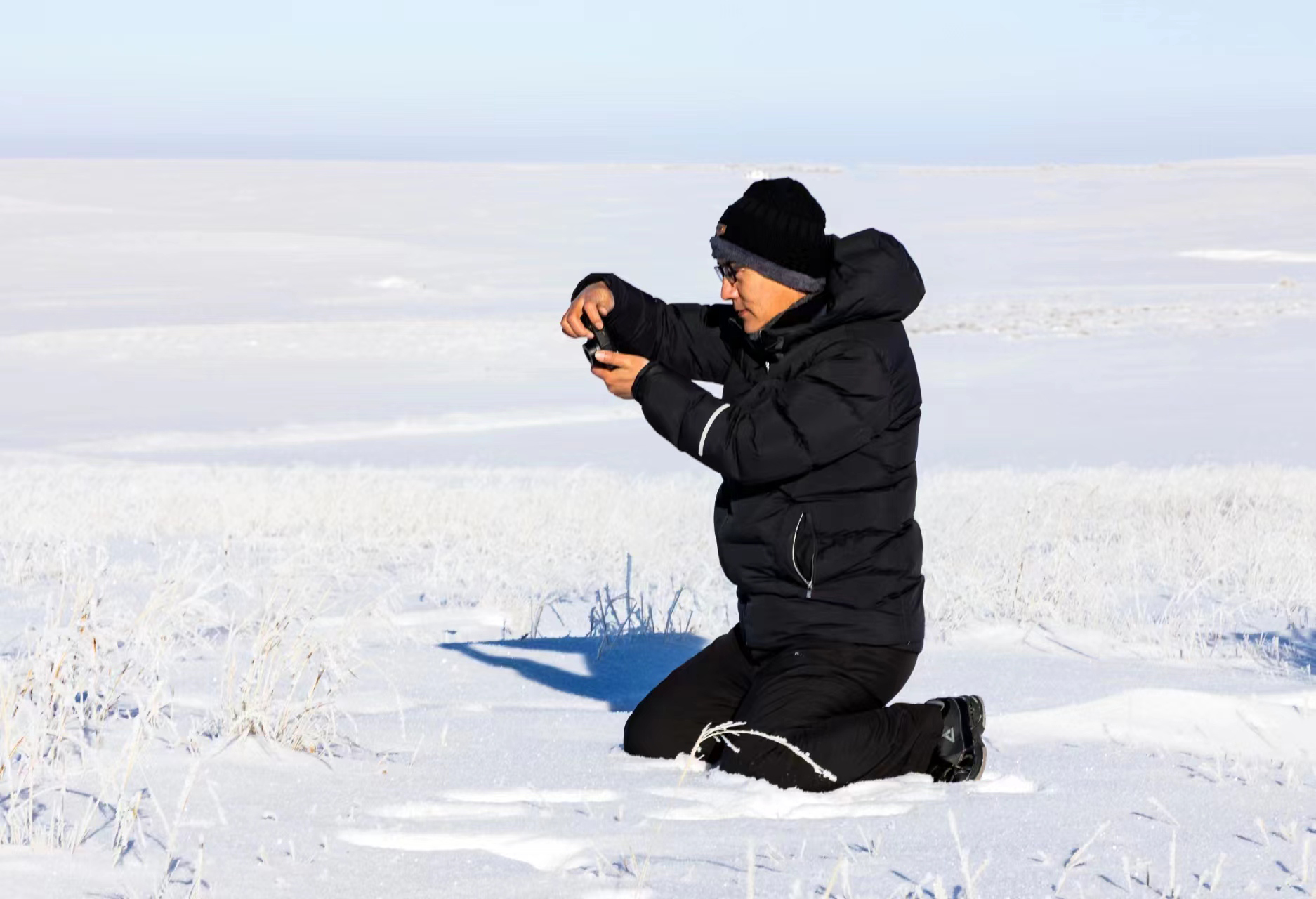 市摄影家协会会员段忆河雪地里拍长城 图片由被采访人提供