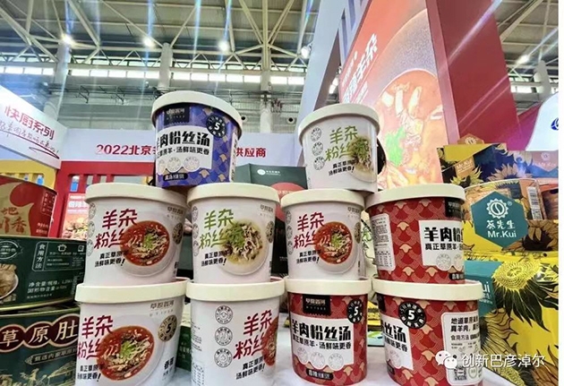 3月28日,由巴彦淖尔农高区食品产业研究院研发,在内蒙古草原鑫河转化的冻干羊肉粉丝汤亮相武汉良之隆食材展览会,由于产品的先进性、新颖性,成为展会的爆款。