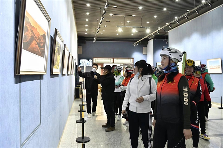 4月26日,市老年大学骑行队、活力骑行队的队员们走进市美术馆一楼展厅,参观“长城两边是故乡——巴彦淖尔长城摄影展”,感受长城文化的无限魅力。
