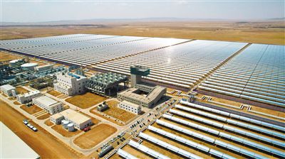 远离人烟的荒漠戈壁之上,光与热的新能源“交响”通过输电网络送往全国各地,点亮万家灯火,也传递着绿色发展的理念。