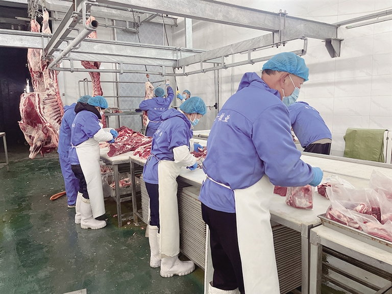 走进旭一牧业屠宰车间100多米长的参观走廊,无菌生产线上屠宰、分割、包装全流程一目了然。一头肉牛最终被分割为40多个部位,分别独立包装后运下生产线。旭一牧业总经理朱兴荣说:“精细分割流程下,我们每天的肉牛加工能力在200头左右。”