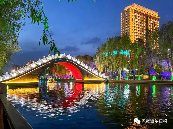 视觉巴彦淖尔丨夜色中的金川河