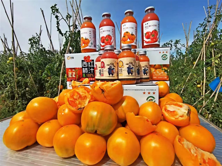 为了让更多的人品尝到美味营养的黄柿子,民隆公司和上海瑞橙食品有限公司合作,在2019年推出了柿柿如意黄柿子汁。柿子汁用五原黄柿子作原料,运用NFC鲜果原榨技术,无任何添加,柿味浓郁、酸甜可口,一上市便备受消费者青睐。