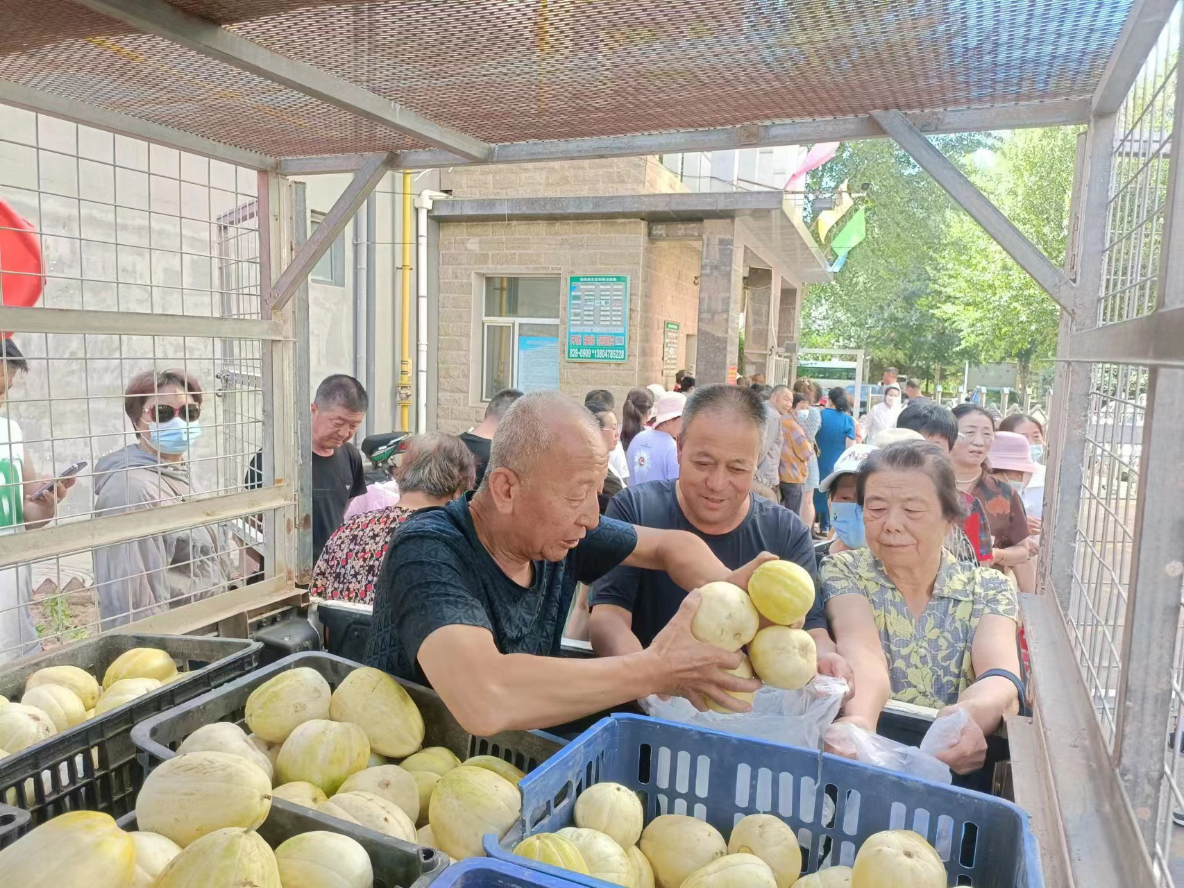 当日下午,一辆拉着1500斤白梨脆香瓜的货车到达小区,一颗颗沉甸甸的香瓜散发着浓郁的香气。早已等候的居民有序排队、登记、领取,每个人脸上洋溢着幸福的笑容。有的人迫不及待地掰开一颗一尝为快,“真好吃,又甜又脆”。7月16日、18日,小区里又发放了2700斤白梨脆香瓜。