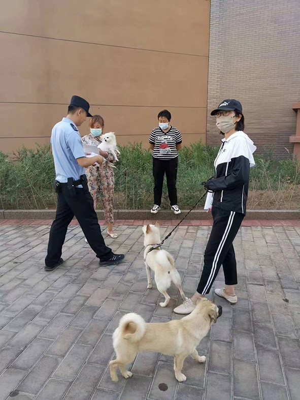 工作人员对犬只出没较多的公园、广场进行重点巡查,对市民遛狗不牵绳等行为进行劝导。