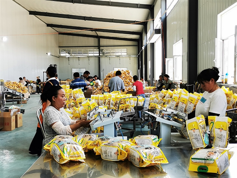 为了保证一小时锁鲜,大丰食品公司在新公中镇丰联村新建了鲜食糯玉米生产加工基地,基地周边收割的鲜食玉米直接运往加工车间,经过全自动智能化流水生产线清洗、风干、真空包装等一系列工序后,通过“傻小胖”品牌线上线下销往世界各地,实现农产品就地转化增值。