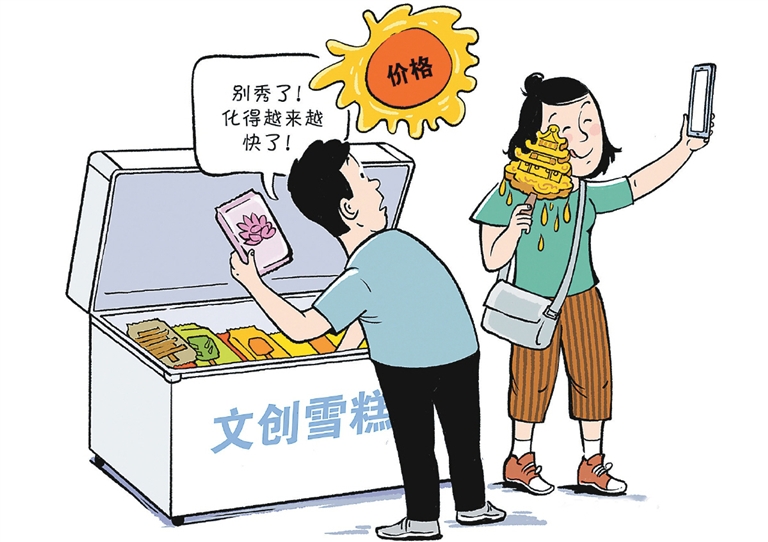 近年来,很多景区、博物馆的文创产品卖得特别好,其中文创雪糕因别具一格的造型设计格外受欢迎。可一打上文创二字,价格也水涨船高,便宜的十几元,贵的要二三十元。有网友感叹:“雪糕怎么卖得比门票都贵!”文化创意有高下之分,生意也有价格贵贱之别,但雪糕溢价过头,也要小心“热”化了自己。