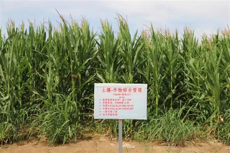 在沙海镇玉米单产提升工程新红村高产区乡间小路上,高产区玉米竞相生长,苗壮叶展,长势喜人。该区域密度控制在亩均6000株以上,重点开展品种筛选、合理密植、导航精量播种、水肥精准调控、地力培肥、病虫绿色防控、抗逆栽培等关键技术的试验攻关,集成一套多措施玉米密植高产精准调控技术及“四控”措施样板区。