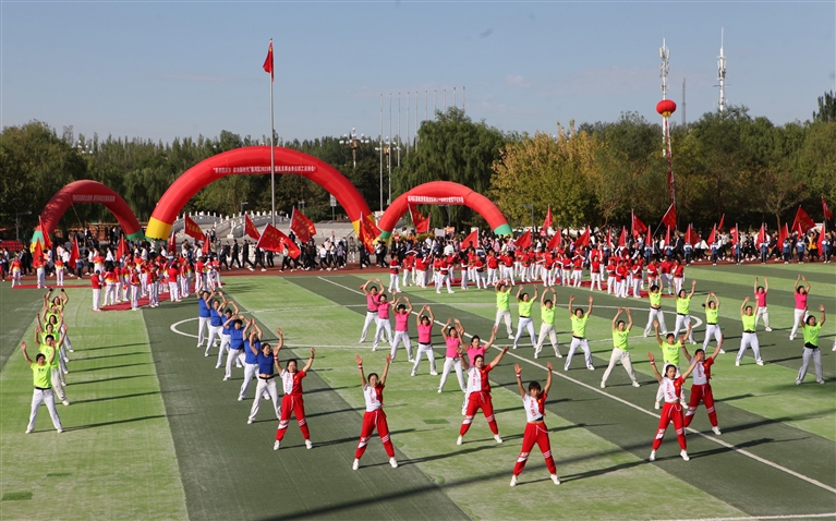 9月19日8点,在临河足球主题公园,“喜迎国庆节 建功新时代”临河区2023年首届机关事业单位职工运动会开幕。