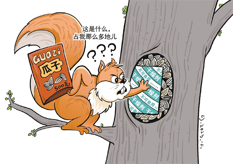 近日,黑龙江一消费者发现在网上买的瓜子,标注一袋500克,到手只有472克。最气人的是,472克里还包括一包167.3克的干燥剂。纯粹的瓜子重量才300多克,缩水近40%。网购干果净含量不足、干燥剂超重的情形较为普遍。商家以干燥剂来算计消费者,瓜子不饱见“商”心。