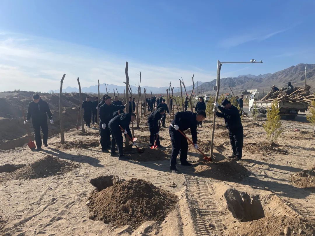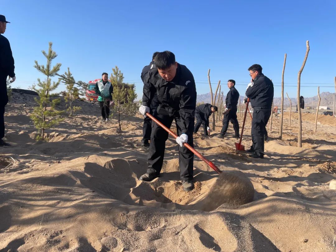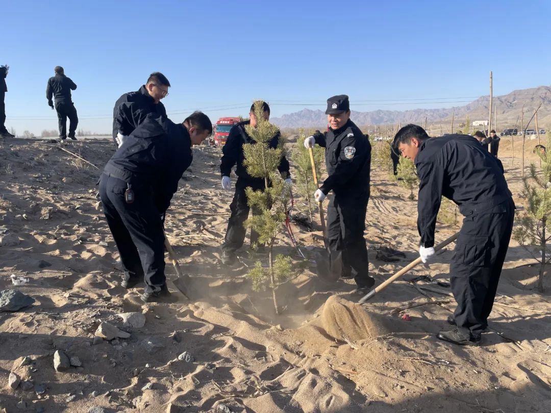 为全面落实习近平总书记关于全民义务植树的重要指示精神,以实际行动践行“绿水青山就是金山银山”发展理念,努力营造全社会爱绿、植绿、护绿的良好氛围。11月9日,乌拉特后旗公安局以“抓党建、强素质、整作风、树形象”专项活动为契机,积极响应旗委、政府关于开展全旗秋冬季造林大会战号召,组织150余名民辅警深入呼和温都尔镇西补隆牧业队开展义务植树活动。