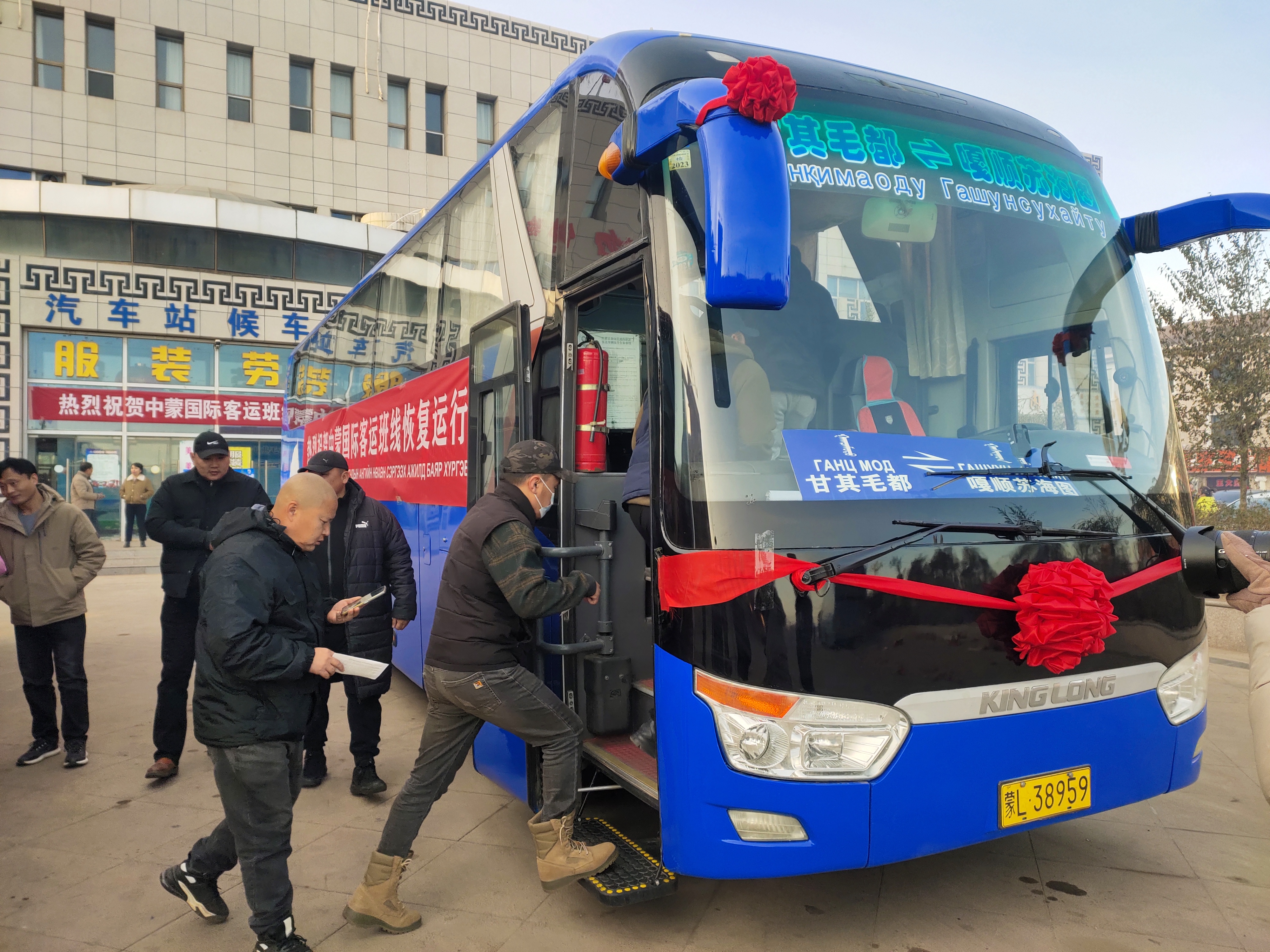 11月13日,一辆车头挂着大红花的巴运客车载着首批10名乘客,缓缓驶出甘其毛都客运中心,前往蒙古国嘎顺苏海图口岸。这标志着甘其毛都-嘎顺苏海图口岸恢复客运通关,由巴运公司承运的客运班线正式恢复运行。