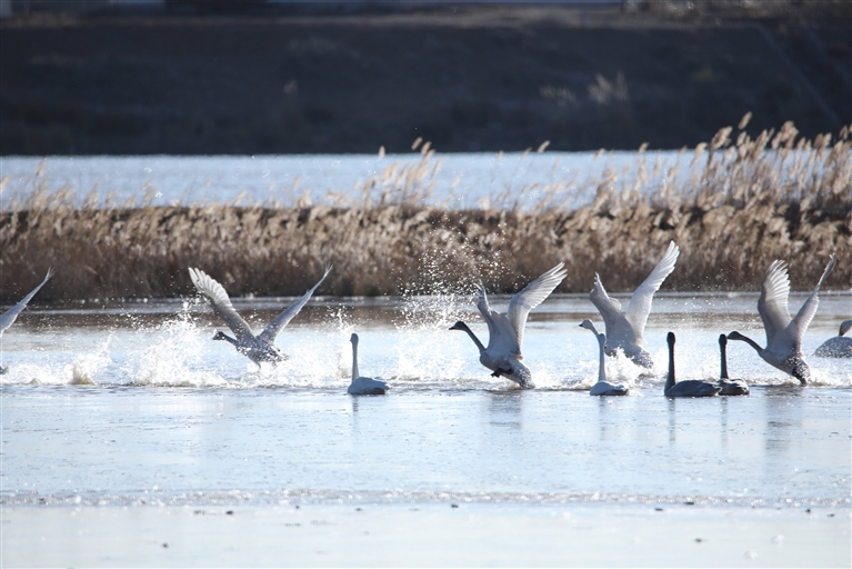 近年来,随着野生动物保护措施的不断增强和野生动物保护宣传力度的加大,黄河湿地生态环境得到有效改善,在黄河湿地栖息鸟类数量明显增加,种类已由过去的60多种增加到现在的近140种。每年10月下旬到来年3月,天鹅、野鸭、鸳鸯、白鹭、黑鹳等候鸟准时飞抵这里。今年,黄河湿地的迁徙停歇候鸟数量大幅度增加,单一种群就达上千只,过境候鸟达数万只。