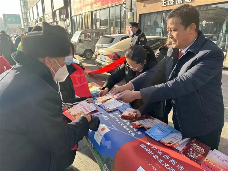 活动中,干警们兵分两路,一组干警走上街头,通过发放宪法宣传折页、法条宣讲、提供法律咨询的方式,向群众讲解宪法的相关条文。另一组干警深入新公中镇永联村,在村口拉起条幅、设置法律咨询台,针对防范养老诈骗、禁止酒驾、民法典、宪法等内容开展普法宣传,耐心解答村民提出的法律问题,引导群众了解和尊重宪法等法律法规,树立法治意识,倡导广大群众成为法律的积极践行者和传播者。