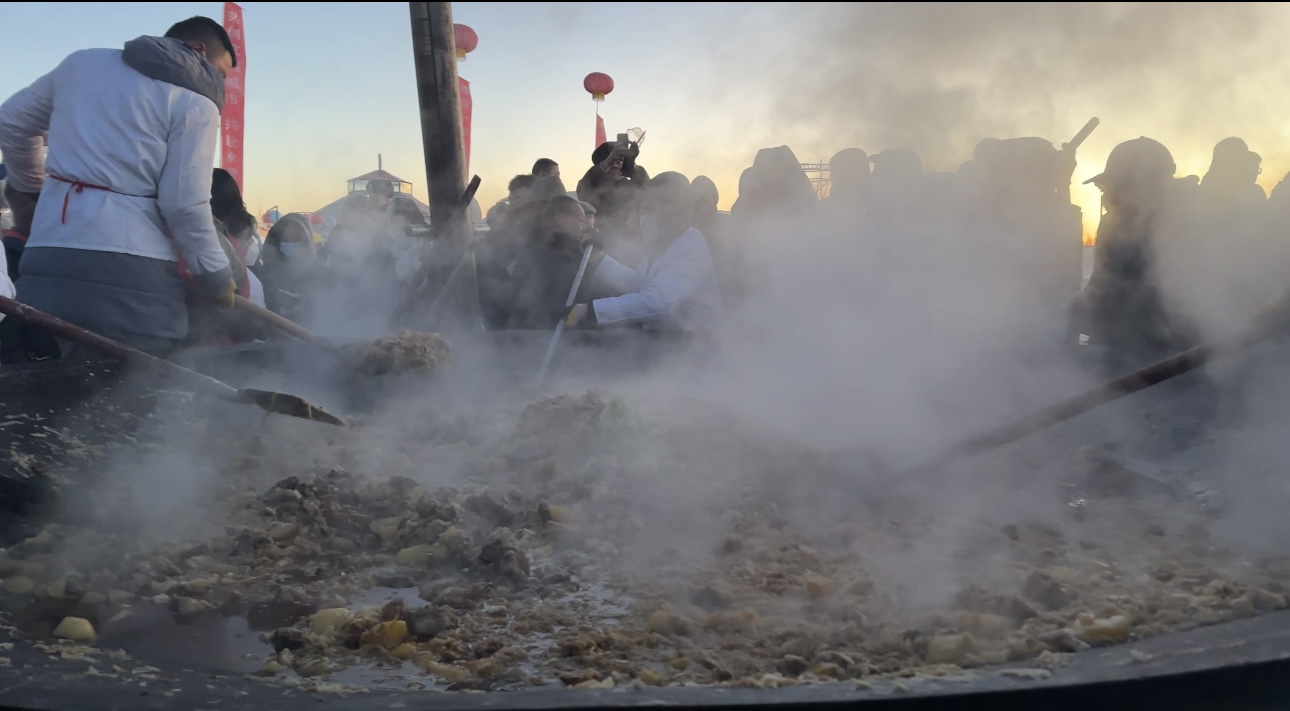 香气四溢的大铁锅猪肉烩酸菜