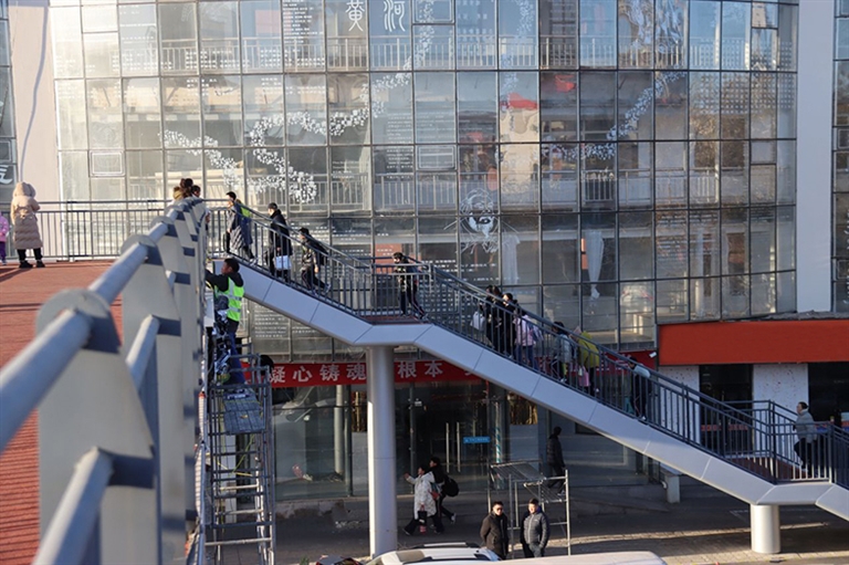 1月11日,记者在新华街过街天桥上看到,新建成的过街天桥更注重实用性和安全性,造型简单大气、美观时尚,不仅是临河城区一道亮丽风景线,更是便捷居民出行的“方便桥”。