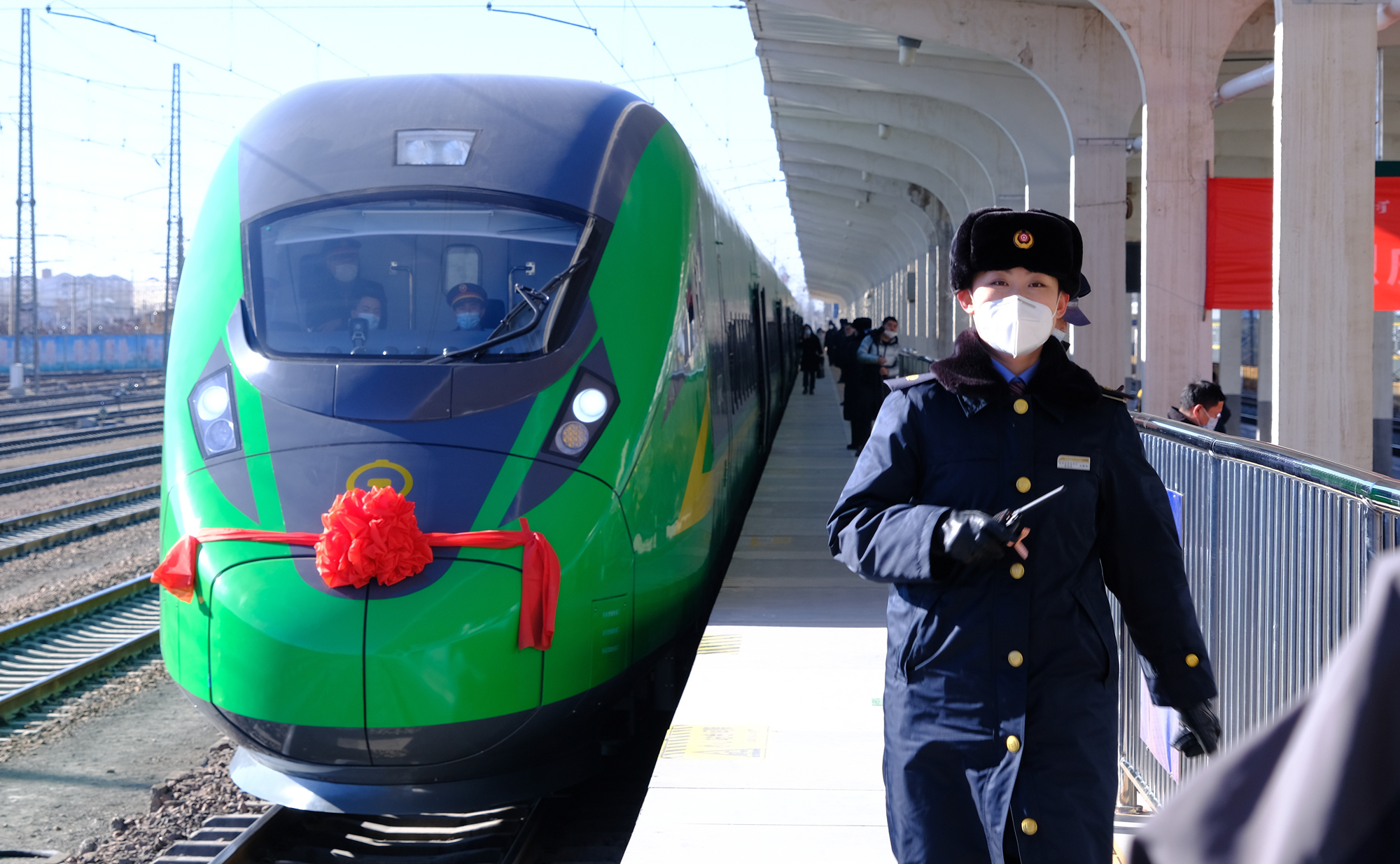 2021年12月26日,巴彦淖尔至呼和浩特首列城际动车发车