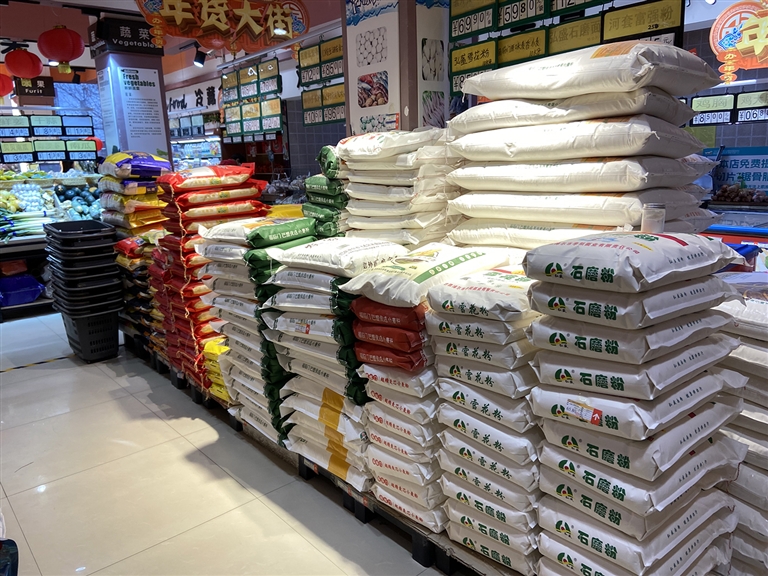 米面油供应情况。目前,各大超市和批发市场库存货源充足,加上粮油批发市场、中粮面业、恒丰面粉的存余量,我区目前存余量分别约为大米1350吨、面粉13060吨、食用油410吨,按照当日数据测算,目前存余量可使用近3个月。