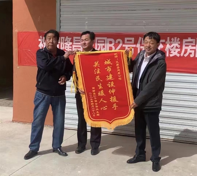 五原西隆昌家园B2号楼业主送锦旗致谢建设单位
