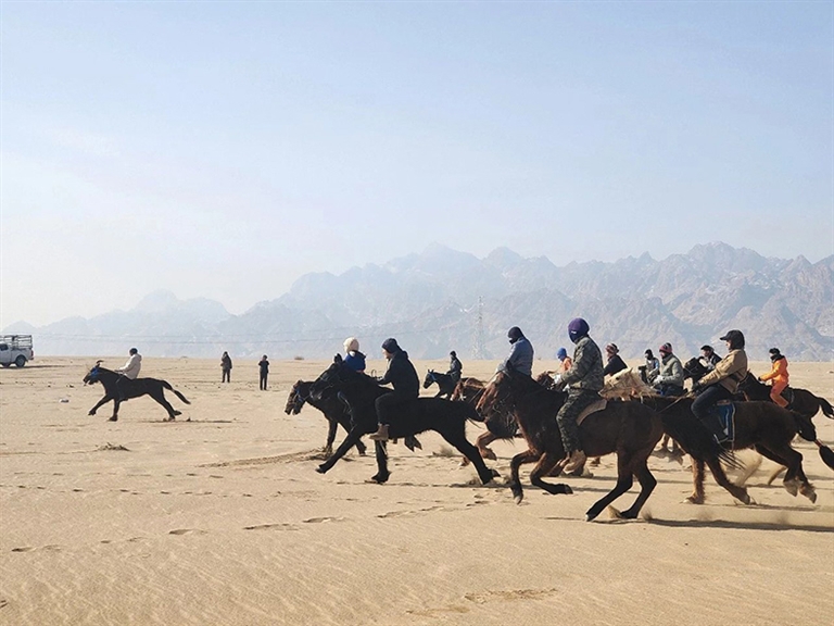 近日,乌拉特后旗呼和温都尔镇那仁乌布尔嘎查热闹非凡,由“阿燃吉拉”团队自发组织的赛马活动在这里举行。骑手们从四面八方赶来,同场竞技,点燃了戈壁草原的速度与激情,同时为游客们献上了一场精彩绝伦的视觉盛宴。
