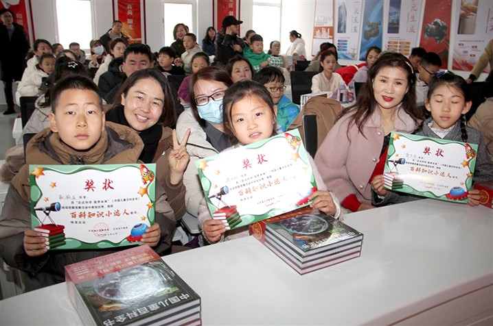 2月21日,巴彦淖尔日报社举行“走近科学 筑梦未来”《中国儿童百科全书》阅读答题竞赛颁奖活动,为首批获奖孩子每人奖励一套《中国儿童百科全书》,并颁发“百科知识小达人”奖状。