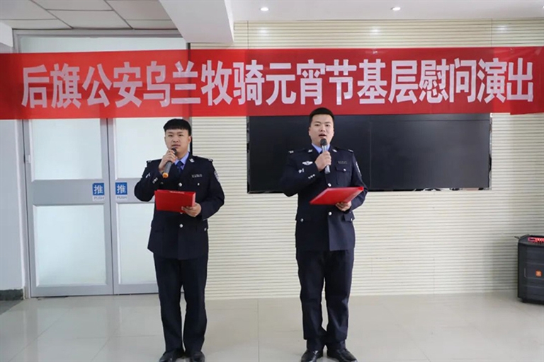 2月21日,在元宵节来临之际,乌拉特后旗公安乌兰牧骑走进巴音宝力格镇派出所,开展“奋进新征程 建功新时代”元宵节慰问演出,把新春祝福与组织关怀送到基层一线。