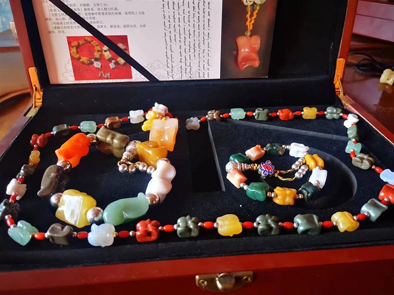 “以前我们牧民贩卖石头,一车才几十块钱,如果把石头做成工艺品,一件就是几百、几千元,要想提高奇石的经济价值,就要把玉雕技艺和奇石结合起来发展,让奇石产业拥有自己的品牌和经济价值。”布德说。2019年,在布德和相关部门的共同努力下,“蒙古族玉雕(乌拉特玉雕)”项目成为内蒙古自治区级非物质文化遗产立项项目,布德设计生产的玉石沙嘎系列产品也在2021年成功入选“内蒙古礼物”。