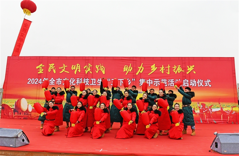 3月4日,以“全民文明实践 助力乡村振兴”为主题的2024年全市文化科技卫生“三下乡”集中示范活动在五原县新公中镇启动。