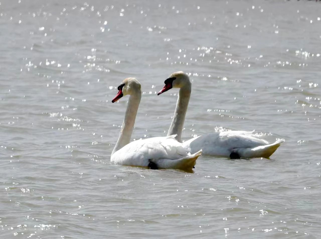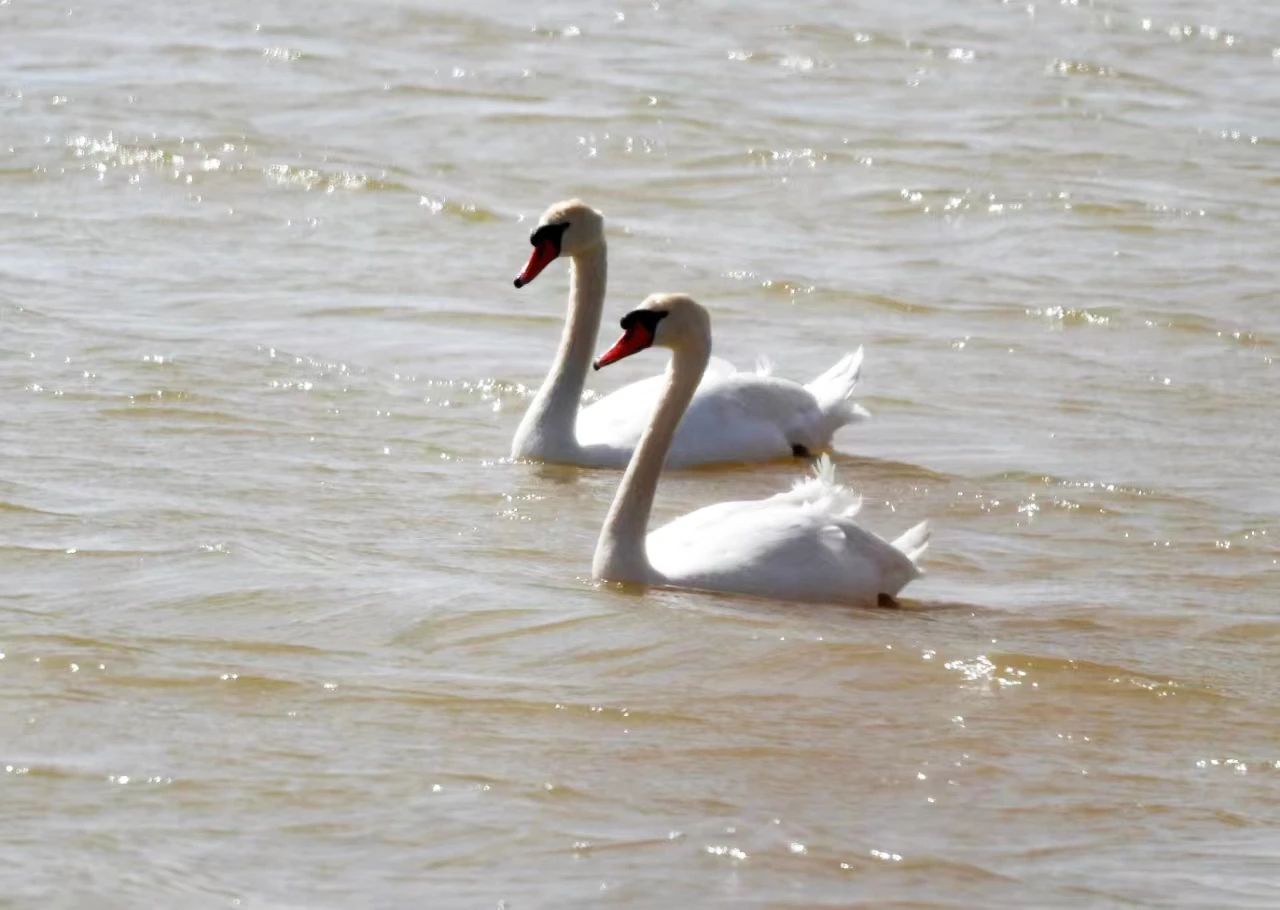 《邂逅疣鼻天鹅》近日,黄河磴口县渡口镇段迎来了两只疣鼻天鹅,只见这两只疣鼻天鹅在水面上自由自在地游玩、觅食。这是自2000年以来,疣鼻天鹅再次光临磴口黄河湿地。巴彦淖尔日报通讯员 马学献 魏巍/摄