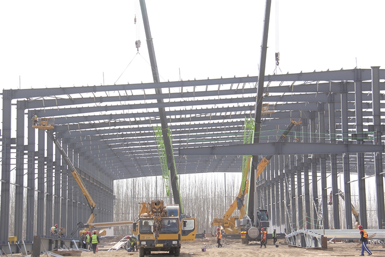 远景风机叶片项目主厂房钢结构施工现场