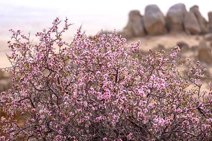 《蒙古扁桃花开正艳》近日,在乌拉特中旗风蚀冰臼地质公园,蒙古扁桃花开正艳,石林和花海共同构成了一幅美丽画卷。蒙古扁桃属于国家二级保护植物,极为珍贵。巴彦淖尔日报签约摄影师 包长明 吕维平/摄