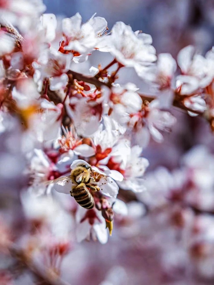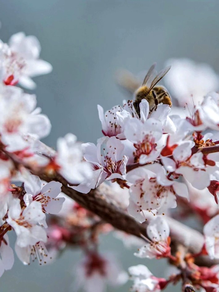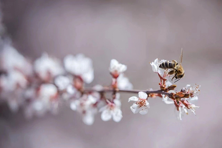 《花开正当时,蜜蜂采蜜忙》 桃花春色暖先开,明媚谁人不看来。近日,随着春风的轻抚,桃花如约而至,引得勤劳的蜜蜂在花间飞舞采蜜。 巴彦淖尔日报签约摄影师 张和平/摄