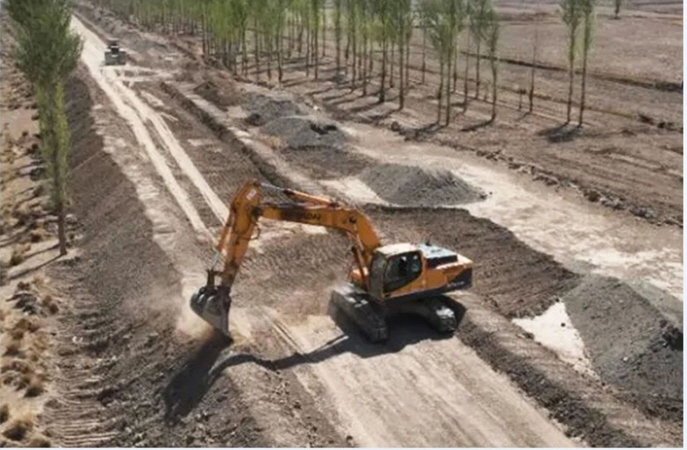 总排干堤岸公路全长206.655公里,总投资4亿元。已完成80%以上的基层和面层碎石备料,并计划5月开始摊铺水稳碎石基层,6月开始摊铺沥青路面,争取7月底全线拉通沥青路面。目前,全线涵洞工程已完成90%左右。