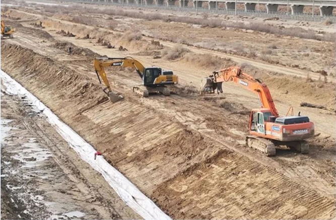 该工程下游标段已于3月初全面开工建设,目前各项工程有序推进中。工程总长91.2公里,总投资7.2亿元,实施后可实现年节水9122万立方米,还可改善因河水阴渗造成的周边农田土壤盐碱化。