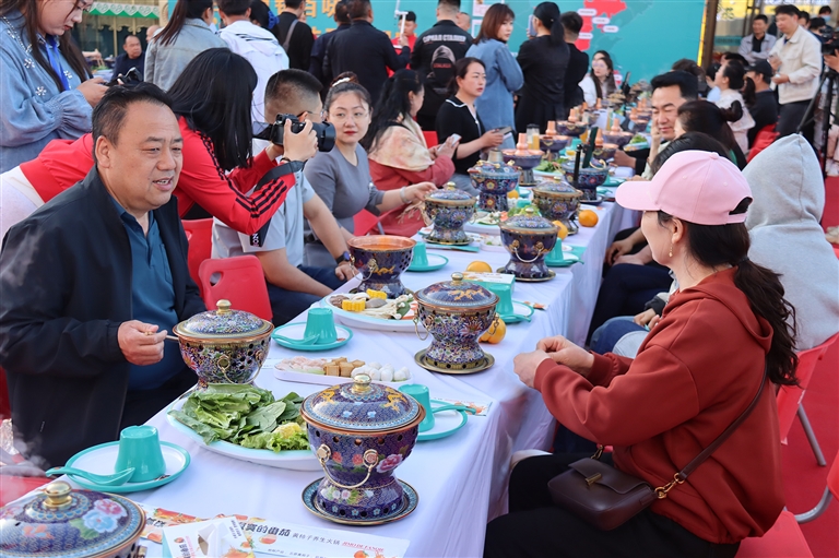 临河分会场“百人百锅百味品黄柿子火锅” 实习记者 王少伟 摄