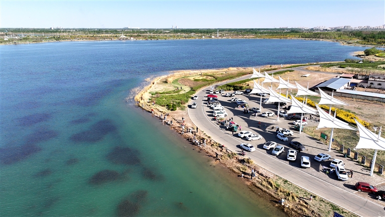 “五一”假期临河镜湖人气爆棚 记者 齐鸿雁/摄