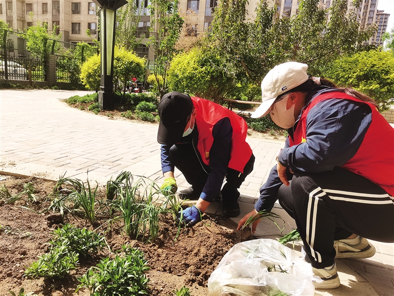 5月9日,35名党员志愿者带着锄头、小铲子陆续来到临河奥林国际二区,参加临河金川街道江林社区组织的志愿种花活动。