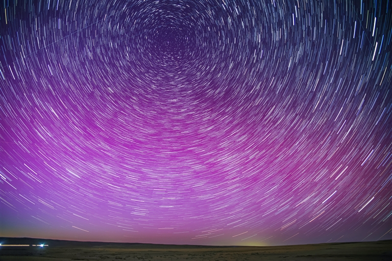 11日,受地磁暴影响,乌拉特后旗潮格温都尔镇出现罕见极光。夜空中,肉眼可见极光柱伴随着星空不断变化,如梦如幻。