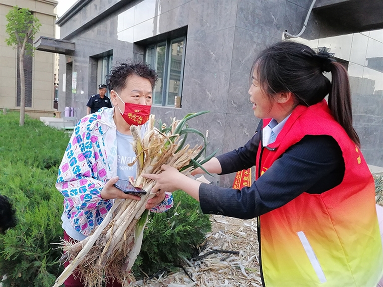 “物业给咱们发大葱了,你们赶紧去领。”5月14日,临河金岸国际的张大爷提着一捆大葱笑呵呵地往家走,一路上遇到邻居就展示刚领到的大葱。