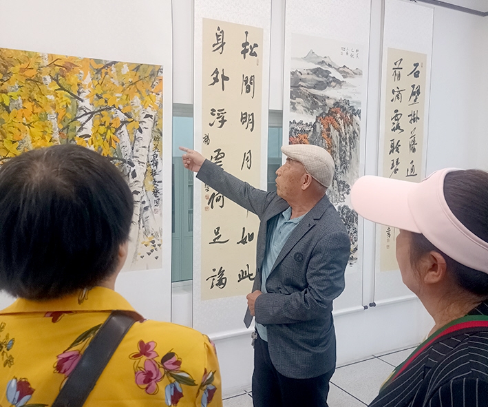 行云流水的书法、意趣横生的山水画……5月8日,由巴彦淖尔市老年书画协会主办的“迎接中华人民共和国成立75周年”翰墨神韵颂华章——巴彦淖尔市老年书画协会“四人书画精品展”在市图书馆展厅与观众见面。