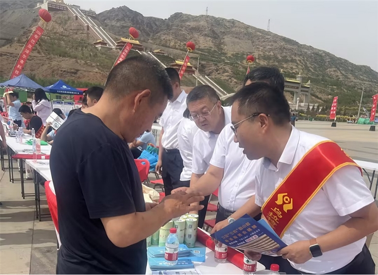 连日来,乌拉特农商银行在全辖范围内开展了金融知识“五进入”教育宣传活动,切实增强人民群众金融服务获得感。图为乌拉特农商银行额尔登布拉格支行工作人员深入田间地头与农民朋友们面对面交流,解答他们在金融消费中遇到的困难和问题。