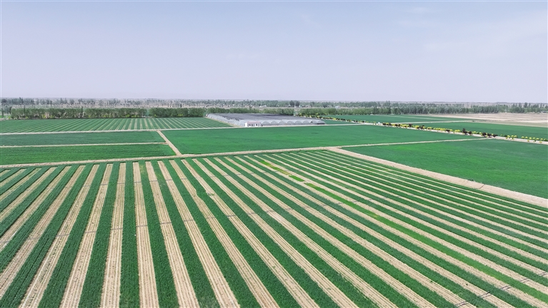 盛夏五原,一望无际的万顷田畴,麦苗茁壮;发展正酣的千里大地,生机盎然。